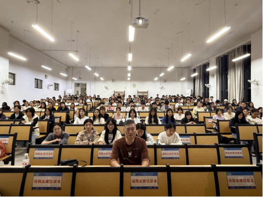 当前位置:员工工作为帮助2025级新生明确学业发展方向,快速适应老员工活,2025年11月9日,william威廉中文官网于武鸣校区A1-107教室开展2025级新生学习分享培训会。学工办主任汤丰宁、员工会学习部成员、2024级优秀员工代表及2025级全体新生参加本次大会。